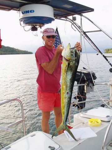 | Getting tired of looking at our happy faces holding mahimahi.
