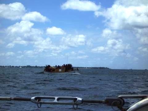 Just as we were entering the pass, this overloaded ferry was heading out! Thank goodness that they were only going 15 miles.